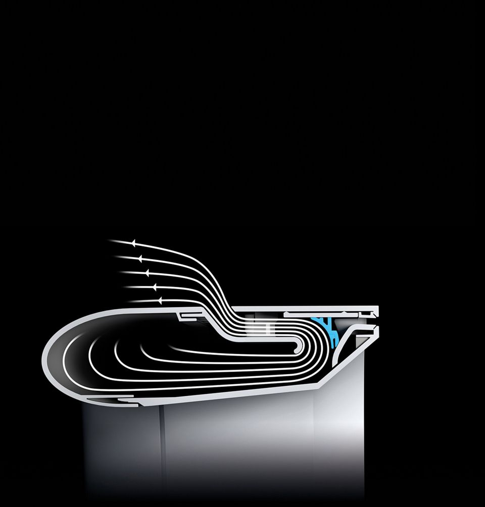 Air Multiplier™ technology delivers over 290 litres per second of smooth, yet powerful airflow – circulating purified air throughout the whole room.²