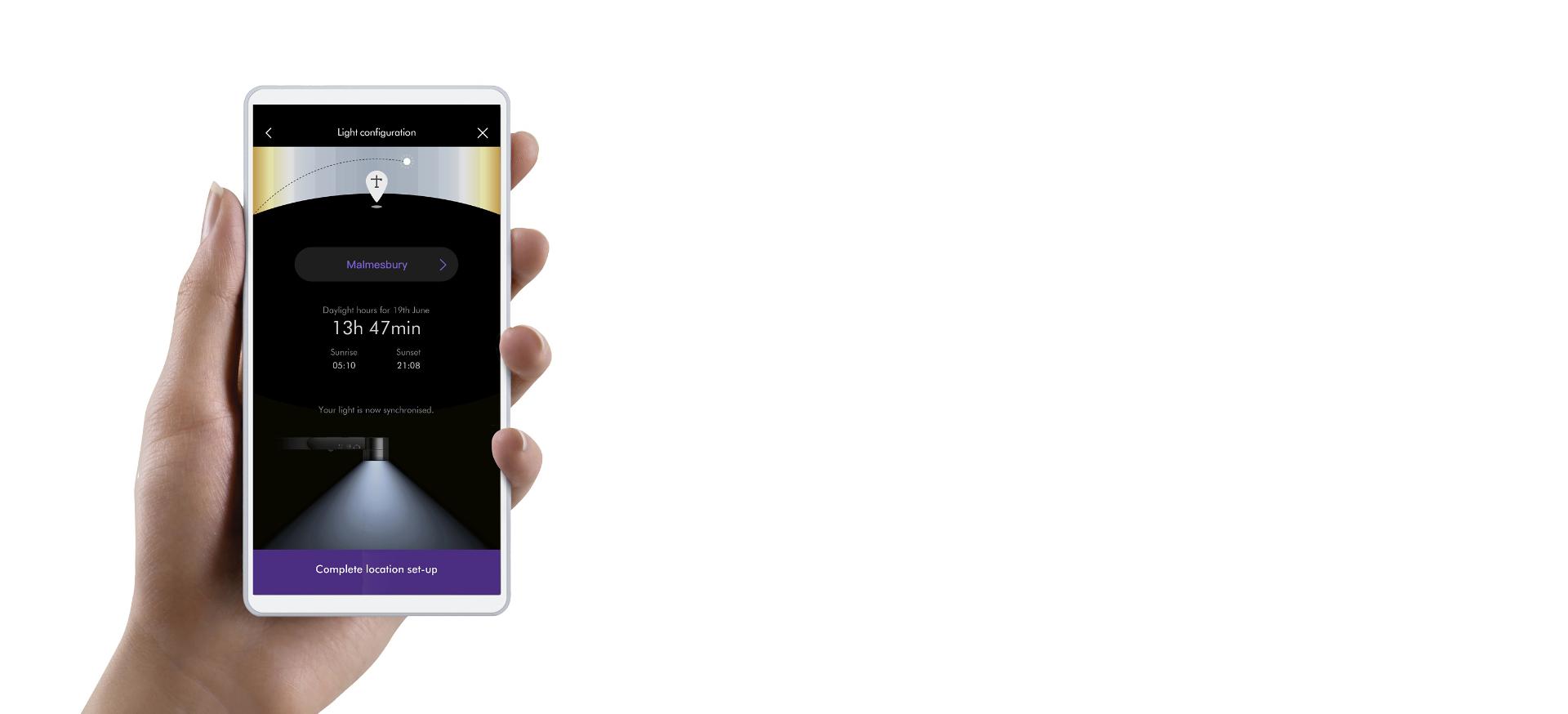 Once your profile is set up, the Dyson daylight algorithm uses your phone's time, date and GPS data to track the daylight where you live. So you can work, do hobbies and go to bed with the right type of light for the time of day.