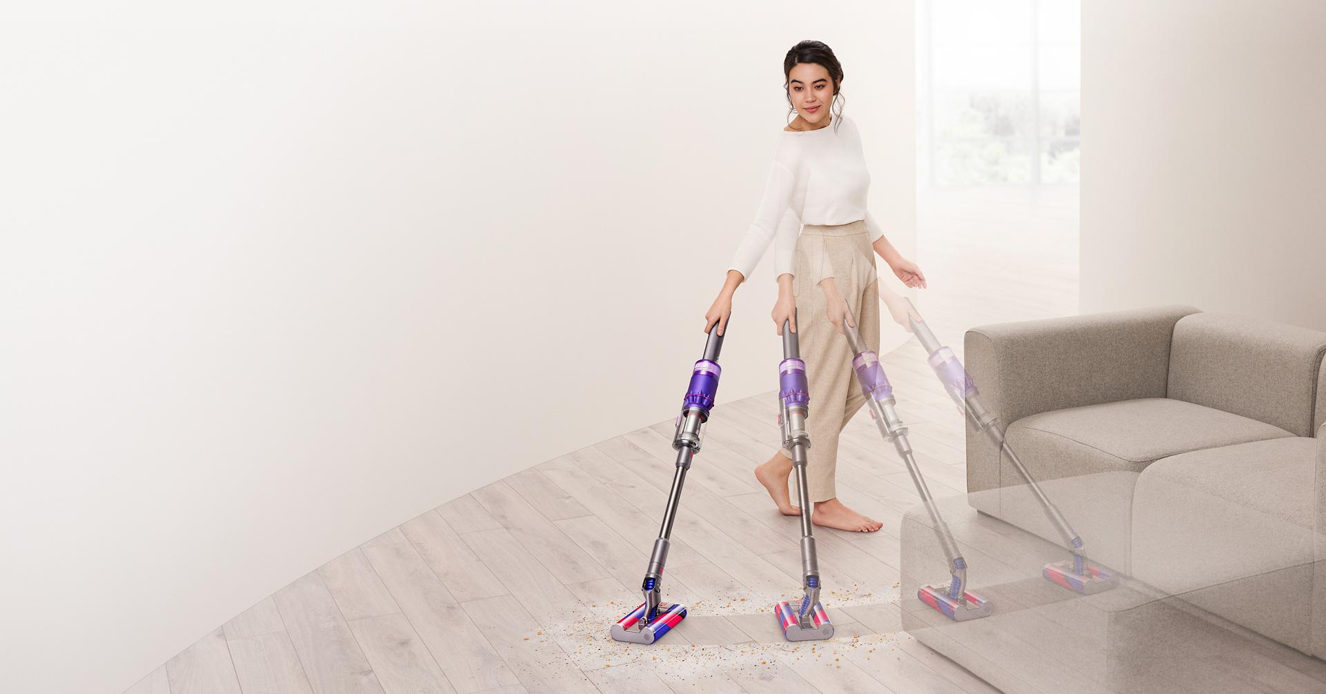 Our first omnidirectional soft roller cleaner head has two motorised soft rollers to pick up everything from large debris to fine particles.1 It easily moves forwards, backwards, even sideways.